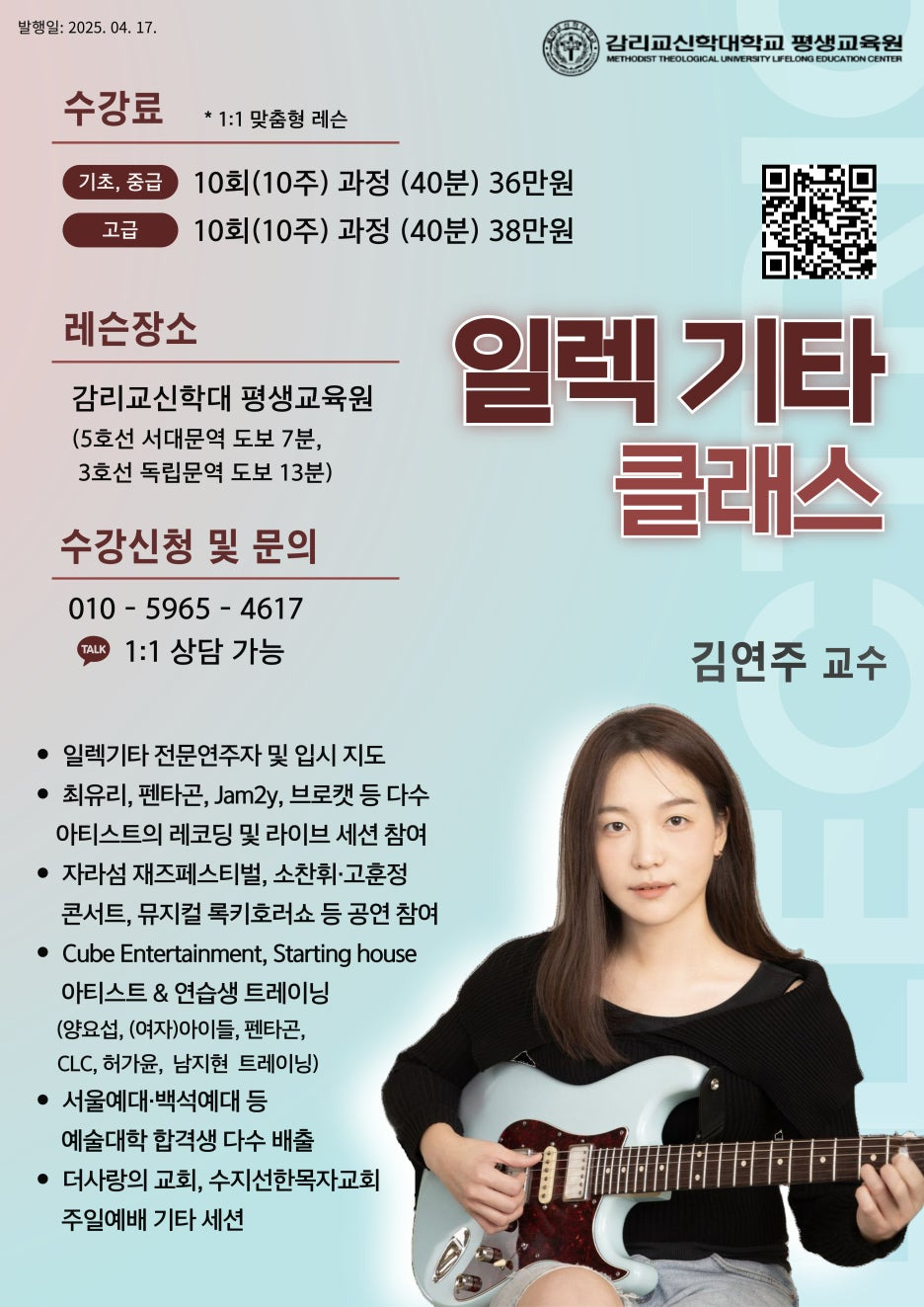 감리교신학대학교 평생교육원에서 상시 모집 중인 일렉기타 강좌는